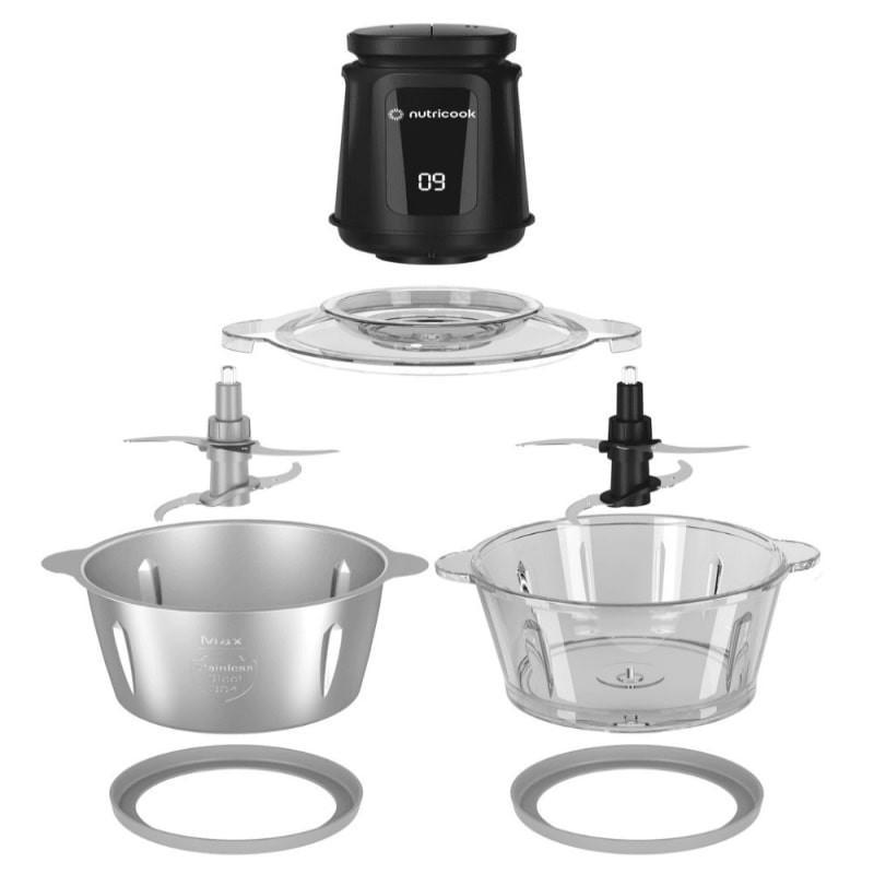 این خرد کن 500 واتی با موتور پرقدرت خود مواد غذایی و خوراکی ها را به صورت یکدست خرد و ریز می کند تا غذا یا دسر شما ظاهر زیباتری داشته باشد. خرد کن nutricook CH2000 دو سرعته بوده که با توجه به سفتی و نرمی مواد غذایی می توان سرعت کم یا زیاد را انتخاب کرد. تعبیه ثانیه شمار دیجیتالی برروی بدنه، حس و حال حرفه ای تری را به دستگاه می بخشد. تایمر دیجیتال برای کنترل دقیق زمان خرد کردن در نظر گرفته شده است.