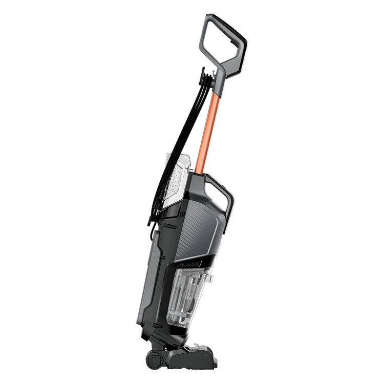 بدنه این مدل از پلاستیک فشردهی مقاوم ساخته شده که نهتنها در برابر ضربه و خط و خش مقاومه، بلکه ظاهر شفاف و براقش حس یک دستگاه لاکچری رو منتقل میکنه. طراحی عصایی دستگاه همراه با کابل 7.6 متری باعث میشه که بدون نیاز به تعویض پریز، بتونی تا شعاع حدود 50 مترمربع رو کاملاً تمیز کنی. این یعنی در سالنهای بزرگ یا راهروهای طولانی کاملاً بدون وقفه کار میکنی.