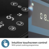 سرخ کن بدون روغن دوقلو فیلیپس NA350 دارای دو محفظه غیر هم اندازه با گنجایش های 6 لیتر و 3 لیتر بوده که نشان دهنده ظرفیت بالای دستگاه بوده که معادل 9 لیتر است و می تواند حداکثر 1.5 کیلوگرم غذا را برای شما آماده کند. البته لازم به ذکر است که بدانید کشوی کوچک دستگاه بیشتر مناسب برای سرخ کردن سیب زمینی، بادمجان و طبخ سبزیجات بوده و کشوی بزرگ برای مرغ شکم پر، کیک، ماهی، جوجه و … مناسب تر است. این سرخ کن دارای 8 برنامه از پیش تنظیم شده بوده که با انتخاب هر کدام می توانید دما و زمان مناسب را نیز مشاهده کنید، که به صورت خودکار تنظیم می شود. همچنین می توانید به صورت دستی زمان و دمای پخت را برای غذای های خود انتخاب کنید.