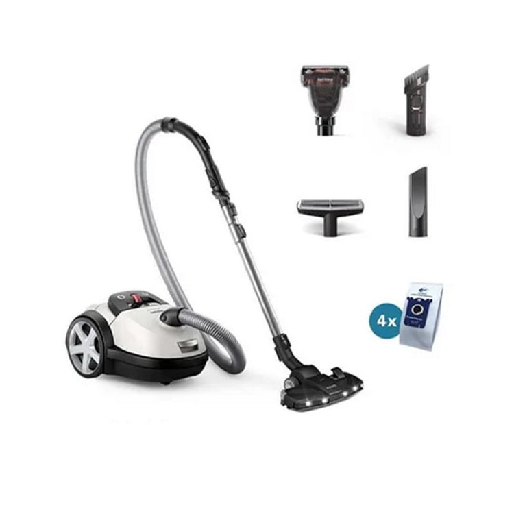 در قسمت انتهایی جاروبرقی Philips مدل XD8042 یک فیلتر HEPA 13 تعبیه شده که به راحتی می تواند 90 درصد هوای خروجی را فیلتر کند و هر گونه ذرات گرد غبار را از بین ببرد. به علاوه کیسه این محصول بسیار بزرگ و جا دار بوده و ظرفیت آن به 4 لیتر می رسد که برای جمع آوری ذرات خشک تا مدت های طولانی به کاربرده می شود. البته لازم به ذکر است که بدانید طول سیم کابل این جاروبرقی بسیار بلند بوده و شعاع عملکرد آن به 12 متر می رسد و شما به راحتی می توانید تمامی نقاط خانه خود را بدون کم ترین جابجایی پریز برق تمیز کنید.
