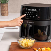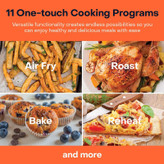 بر روی قسمت کنترل پنل لمسی، پنج برنامه اصلی و شش برنامه جانبی تعبیه شده که تنها با انتخاب یکی از آنها، شرایط پخت دستگاه باتوجه به آن برنامه تعیین و اجرا میشود. برنامههای اصلی این محصول شامل عملکرد سرخ کردن، گریل کردن، خشک کردن میوه، پختن و پخت کیک و همچنین گرم کننده مجدد غذا میباشد. در ردیف بالای این برنامه ها اما برنامه اختصاصی برای پخت سیب زمینی سرخ شده، مرغ، برگر، استیک، ماهی و مواردی همچون سمبوسه یا پیتزا وجود دارند. البته گفتنی است که مانند انواع هواپز بدون روغن این محصول نیز با قابلیت تنظیم دستی زمان و دما امکان فراهم سازی شرایط پخت باتوجه به نوع و میزان مواد غذایی را دارد.