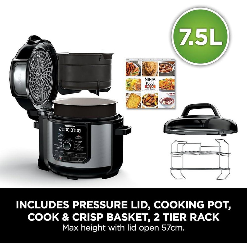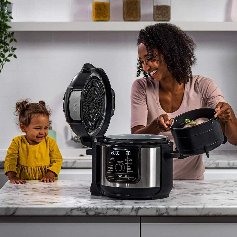 مولتی کوکر 9 در 1 Ninja Foodi MAX با 9 عملکرد باورنکردنی پخت و پز و ظرفیت بزرگ برای تغذیه کل خانواده، پختن انواع غذا، میان عده ها و دسرهای خوشمزه را سریع و آسان می کند. یک دستگاه که کارهای زیادی می کند! مهمانان خود را با 9 عملکرد پخت و پز در یک قابلمه تحت تاثیر قرار دهید، از جمله ( پخت تحت فشار، سرخ کردن با هوا، آرام پز، بخارپز، پخت/کباب کردن، سرخ کردن/تفت دهی، گریل، ماست و خشک کن میوه ). با Ninja Foodi MAX می توانید یک مرغ کامل 3 کیلوگرمی را بپزید و سپس سرخ کنید.