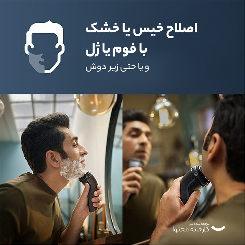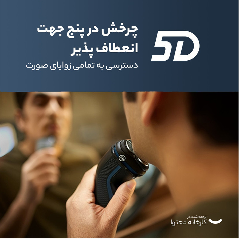 شارژر USB - سری 5 بعدی - با 1 ساعت شارژ 1 ساعت ران تایم - شارژ سریع 5 دقیقه ای - تر و خشک (کف٫ژل یا فوم ریش ) یا خشک - تیغه های استیل پیشرفته - 100٪ ضد اب - دارای خط زن - تکنولوژی Anti Corrosion - سری محافظ تیغه