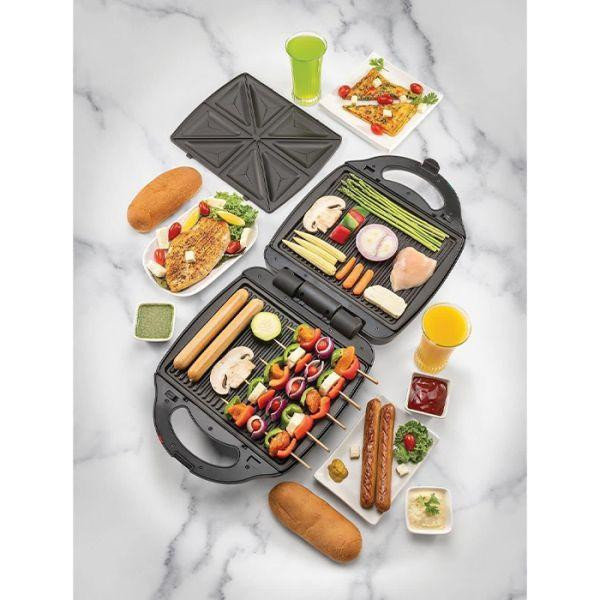 ساندویچ ساز بلک اند دکر مدل TS4120 یک دستگاه مناسب برای تهیهی ساندویچ در خانه می باشد. کیفیت خوب، پوشش نچسب و چند کاربردی بودن دستگاه از دیگر مزایای این دستگاه می باشد. این ساندویچ ساز علاوه بر قابلیت تهیه ساندویچ، صفحات گریل نیز دارا است. می توانید گوشت، سبزی و … را به راحتی بر روی صفحات گریل این دستگاه آماده و گریل کنید. قدرت بالای دستگاه ساندویچ ساز با سرعت مناسب، ساندویچ (اسنک) یا دیگر موارد را به آسانی پخته و آماده می کند.