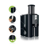 آبمیوه گیری براون (Braun) مدل J300 دارای مخزن تفاله میوه در قسمت پشت دستگاه بوده و خروجی های حاصل از میوه ها را در درون خود جای می دهد. ظرفیت مخزن تفاله دو لیتر بوده و می توان آن را به راحتی جدا کرد و شست و شو داد. همچنین در قسمت جلوی دستگاه می توان مخزن آبمیوه شیشه ای مدرج را قرار داد تا به هر میزان که خواستید آبمیوه تهیه کنید. ظرفیت مخزن آن 1.25 لیتر بوده و در دهانه خروجی آبمیوه قابلیت ضد چکه قرار داده شده است.