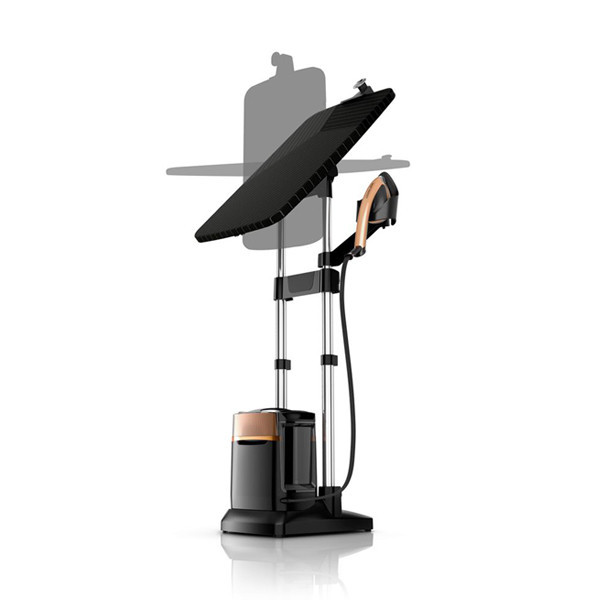 بخش موتور دستگاه که از رنگ طلایی و مشکلی طراحی شده، به سادگی از پایه زیرین جدا میشود تا در هر مکانی قابل استفاده باشد. لازم به ذکر است که مخزن آب دستگاه نیز در این بخش تعبیه شده است. همچنین میله های استیل محصول در کنار این موتور جایگذاری میشوند تا جایگاهی برای نصب تکیه گاه لباس باشد.