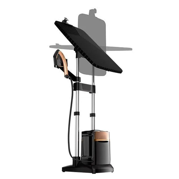 بخش موتور دستگاه که از رنگ طلایی و مشکلی طراحی شده، به سادگی از پایه زیرین جدا میشود تا در هر مکانی قابل استفاده باشد. لازم به ذکر است که مخزن آب دستگاه نیز در این بخش تعبیه شده است. همچنین میله های استیل محصول در کنار این موتور جایگذاری میشوند تا جایگاهی برای نصب تکیه گاه لباس باشد.