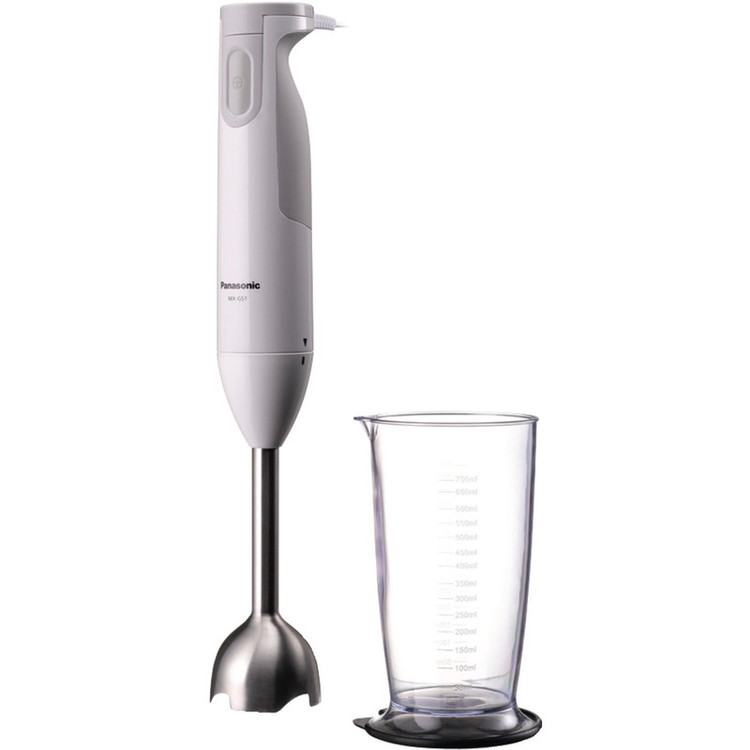 گوشت کوب برقی پاناسونیک مدل MX-GS1 محصولی ۶۰۰ واتی بوده که به تیغههای چهارپرهی انحصاری شرکت «پاناسونیک» مجهز شده است. این مجموعه تیغهها شامل دو پرهی عمودی و دو پرهی افقی هستند که در ترکیب با یکدیگر، کارایی مناسبی را پدید میآورند. گوشت کوب برقی پاناسونیک مدل MX-GS1 به لطف موتور قدرتمند و تیغههای چهارگانه با طراحی ویژه، برای تهیهی انواع سس و اسموتی محصولی کارآمد بهحساب میآید. پایهی این محصول از استیل ضدزنگ ساخته شده است و بهراحتی میتوانید از آن برای مخلوط و خردکردن موادغذایی در حال پخت استفاده کنید. دستگیرهی گوشت کوب برقی پاناسونیک مدل MX-GS1 تماما از پلاستیک ساخته شده و برای قسمتهایی که با دست تماس دارد، از پلاستیکی متفاوت از سایر بخشها استفاده شده است. به لطف این پلاستیک ویژه و طراحی ارگونومیک دسته، در دستگیری و استفاده از این گوشتکوب برقی کاری ساده است. تمامی بخشهای گوشت کوب برقی پاناسونیک مدل MX-GS1 بهجز بدنهی اصلی که موتور دستگاه در آن قرار گرفته است، قابلشستوشو در ماشین ظرفشویی هستند. از دیگر نکات قابلتوجه گوشت کوب برقی پاناسونیک مدل MX-GS1 میتوان به وجود پایهی نگهدارندهی دیواری در بستهبندی آن اشاره کرد. علاوهبر پایهی دیواری، یک لیوان پلاستیکی مدرج ۰.۷ لیتری نیز به کاربر ارایه میشود.
