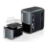 به لطف طراحی ویژه این دستگاه امکان پخت تا چهار غذای مختلف به طور همزمان وجود دارد. شما می توانید هر محفظه را توسط سینی های توری به دو طبقه تبدیل کرده و 4 وعده غذایی در یک زمان بپزید. توانایی همگام سازی پخت غذاها و تنظیمات هر محفظه به راحتی توسط نمایشگر لمسی روی بدنه قابل انجام است.