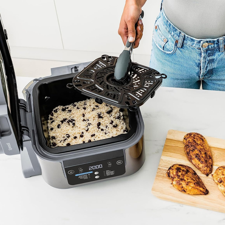 سرخ کن و مولتی کوکر نینجا مدل ON400 برای خانم های شاغل و افرادی که وقت و حوصله آشپزی با قابلمه و ماهیتابه را ندارند، یا افرادی که به دنبال سبک زندگی سالم و رژیم غذایی هستند یک دستگاه کم نظیر است. چرا که به لطف سیستم پخت سریع که بخار و گرما را برای پخت سریع ترکیب می کند و می تواند وعده های غذایی را تنها در مدت زمان 15 دقیقه آماده کند.