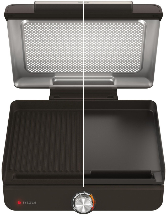 تهیه غذاهای خلاقانه و خوشمزه نظیر پیتزا، لازانیا، پنکیک، انواع املت ها، جوجه، میگو، ماهی سوخاری و … را آسان تر از آنچه فکرش را بکنید با گریل و کباب پز نینجا GR101 آماده شده و سختی کار با ماهیتابه و اجاق گاز را نخواهید داشت. این گریل دستگاهی جمع و جور و از نوع رومیزی، باکیفیت ساخت بالا و تجهیز به فناوری های جدید بوده تا غذاهای مورد علاقه تان را با حرارت بالا و با بهترین کیفیت پخت تهیه کند.