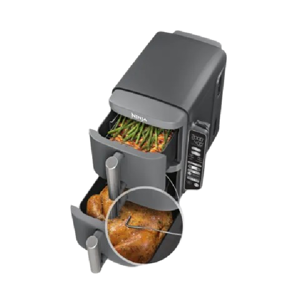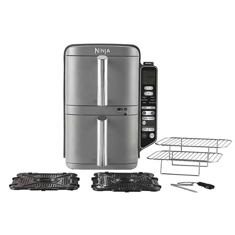 قطعا آشپزی با سرخ کن بدون روغن دو قلو نینجا مدل SL451 سریع تر بوده و تا 55 درصد نسبت به اجاق های فن دار کا پخت و پز را با سرعت بیشتری در عرض چند دقیقه انجام می دهد. شکل کاسه مربعی بوده و با روکش نچسب پوشش داده شده تا هیچ ماده غذایی به آن نچسبد. همچنین 2 عدد سینی کریپسر و 2 توری که همراه دستگاه ارائه شده از روکش نچسب بهره می برند. در کنار بدنه یک کنترل پنل زیبا و لمسی طراحی شده که نشان می دهد کار با این دستگاه بسیار ساده است. کشوهای نچسب، بشقاب های ترد و سبدهای توری قابل شستشو در ماشین ظرفشویی هستند و به راحتی تمیز می شوند.